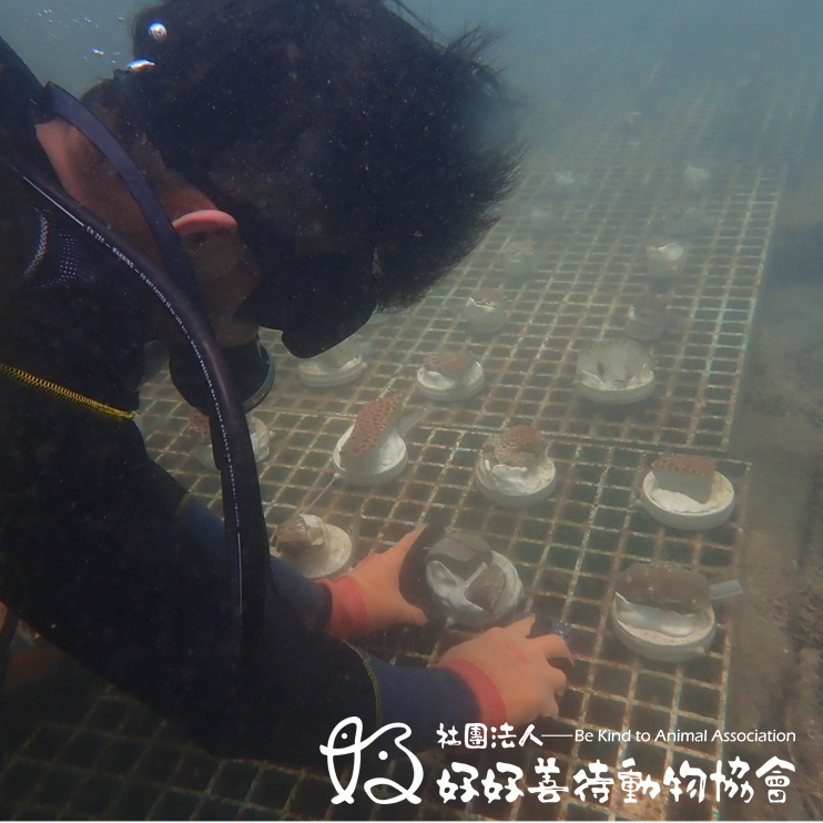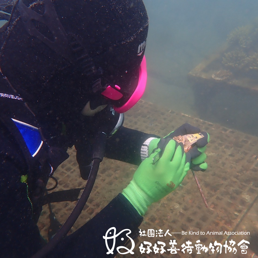 每一次下水,我們都仔細地為珊瑚清理覆蓋的藻類與泥沙,移除白結螺,也留意那些躲在角落、伺機而動會啃食珊瑚海蛞蝓。