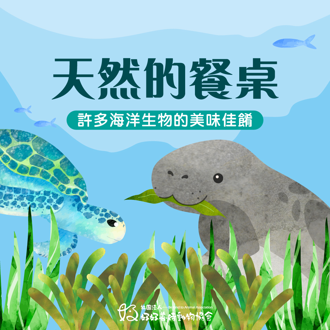 儒艮、綠蠵龜等海洋生物都會直接以海草為食,