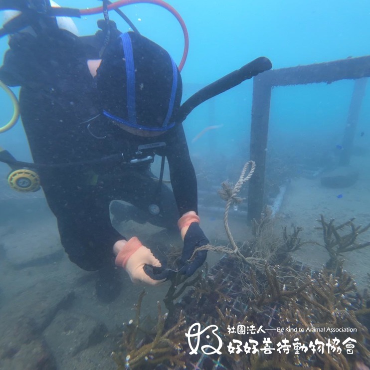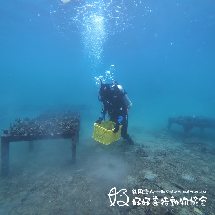 同仁們每週頂著18、19度的水溫下水觀察珊瑚們是否安全的待在牠們的家,