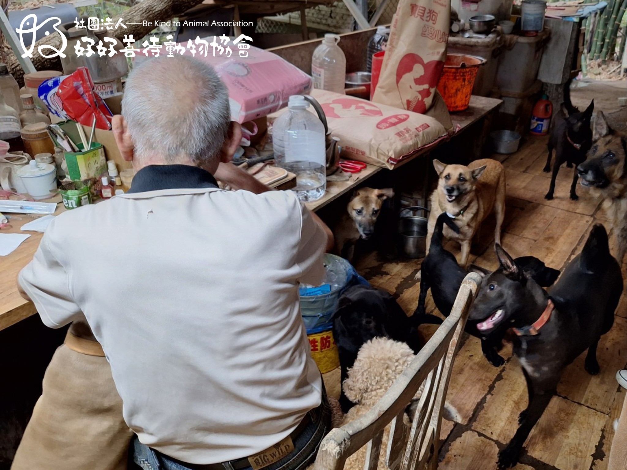我們陪著周爸巡視園區,聽他訴說著心裡的擔憂,害怕自己哪天走不動時,狗狗們將無依無靠;因此,他不敢再接收新狗狗。唯一的心願就是在自己有生之年,把狗園打理妥當,讓毛孩子們能安然終老,避免牠們重回街頭。