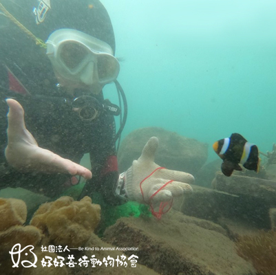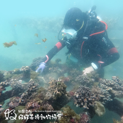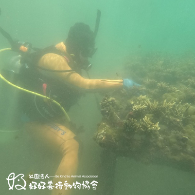 拔除纏繞在珊瑚的廢棄漁網,避免物理損傷與遮蔽陽光