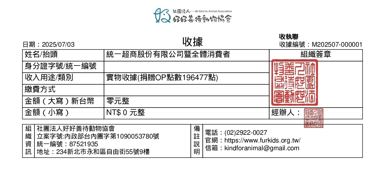 2025/03/01-2025/06/30期間,好好善待動物協會獲贈196,477點(元)。